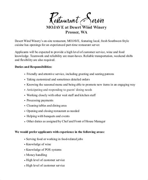 Server Job Description Sample . Learn what a restaurant server does, what skills and qualifications they need, and how much they earn. See a sample template for.